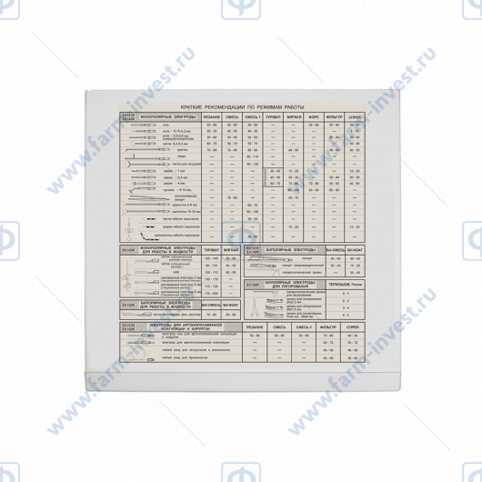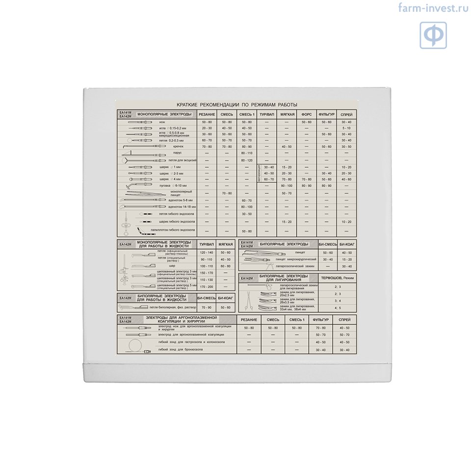 | Режимы резания и коагуляции тканей | 7 монополярных; 4 биполярных |