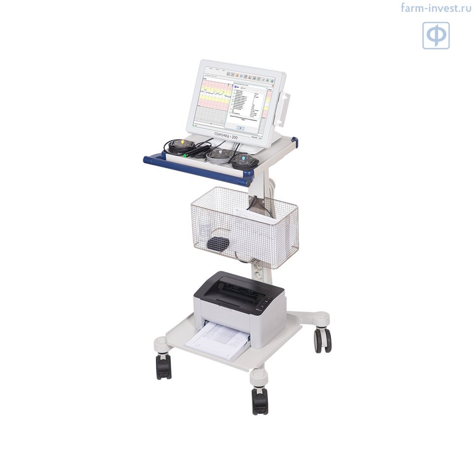 Фетальный монитор Сономед-200 с автоматическим анализом КТГ (кардиотокограф) для одно/двуплодной беременности предназначен для контроля состояния плодов на основании одновременной регистрации сердечных ритмов и двигательной активности, а также сократительной активности матки в различные периоды беременности и во время родов.