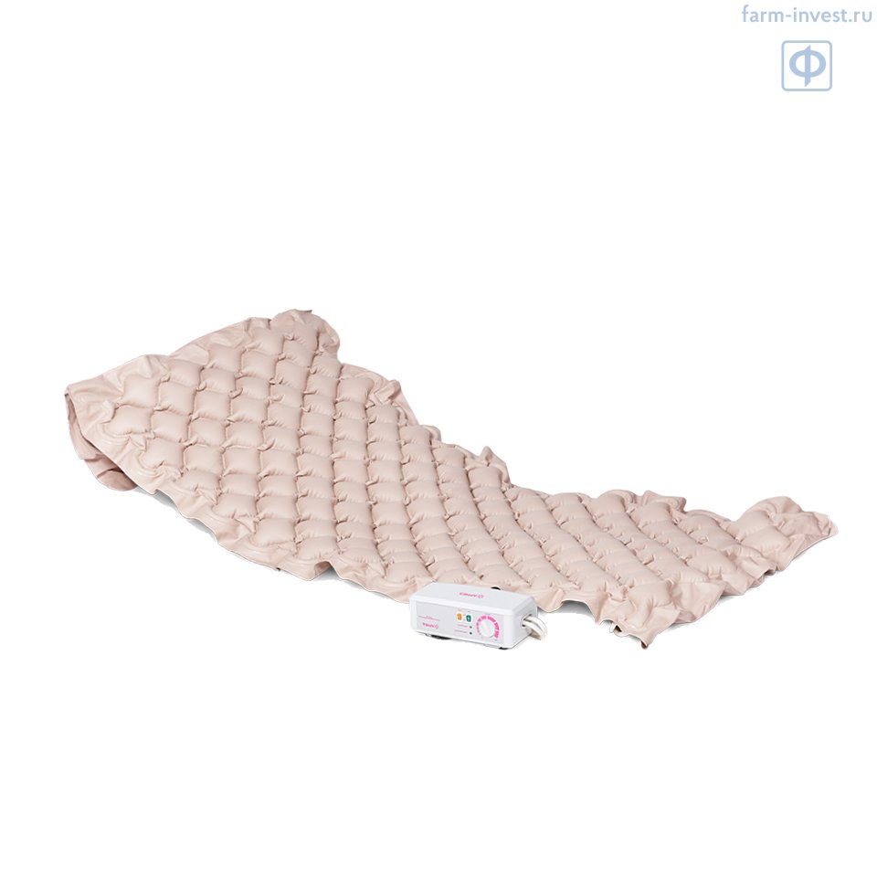 - Матрас имеет 130 ячеистых секций для максимальной адаптации под анатомические особенности тела пациента, что способствует улучшению кровообращения и лимфотока;
