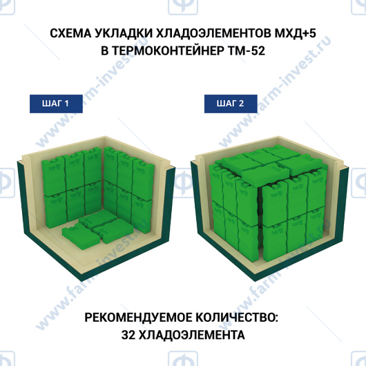 - Рекомендовано использование 24 хладоэлементов МХД-1 или 32 хладоэлементов МХД-2; МХД+5;