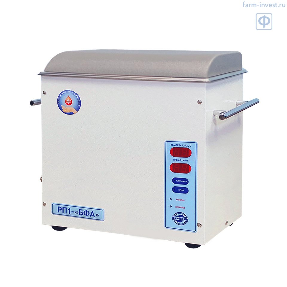 Размораживатель РП1-БФА предназначен для быстрого и бережного оттаивания и подогрева плазмы, крови, эритроцитсодержащих компонентов и замороженного криопреципитата в 1-м контейнере вместимостью до 500 мл или в 2-х до 250 мл после хранения в замороженном состоянии, непосредственно перед трансфузией пациенту, а также для подогрева растворов в контейнерах или флаконах.