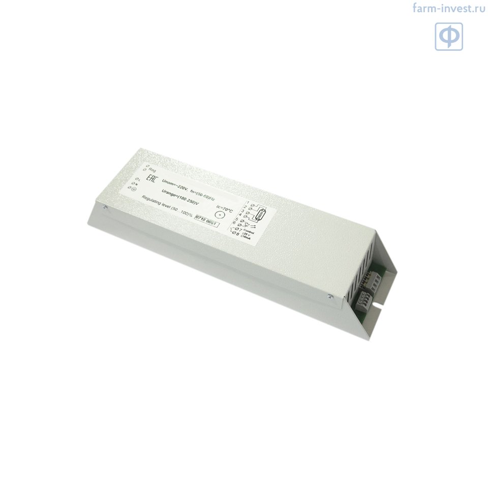 Электронный аппарат пускорегулирующий ЭПРА-Л 220-1х(95-145)-2202-184 с независимым прогревом электродов, без регулировки мощности, подключаемый к сети и лампам посредством клеммных колодок, предназначен для зажигания и обеспечения рабочего режима одной ультрафиолетовой лампы мощностью 95-145 Вт.