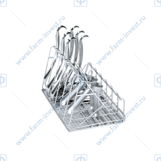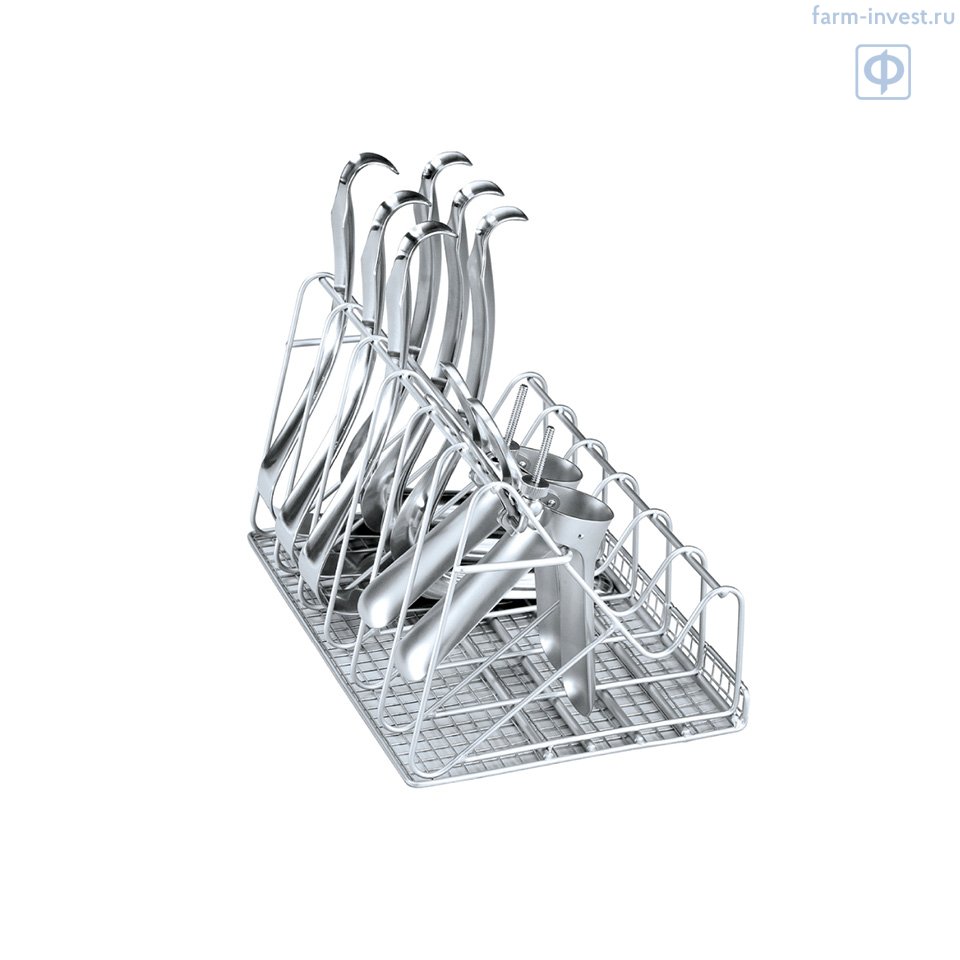 Поставляется в базовой комплектации для гинекологии: верхняя и нижняя корзина, вставки для гинекологических зеркал, сетчатая вставка для принадлежностей.