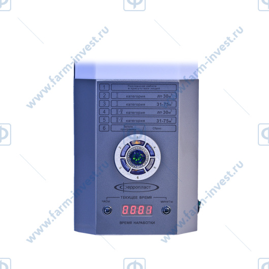 - Возможность установки времени работы рециркулятора в зависимости от объема и категории обрабатываемого помещения, при подготовке его к функционированию;